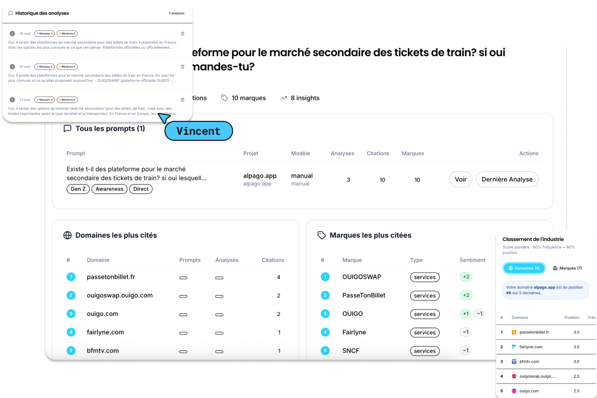 Idéal pour les équipes marketing et les fondateurs qui veulent mesurer et améliorer leur visibilité IA.