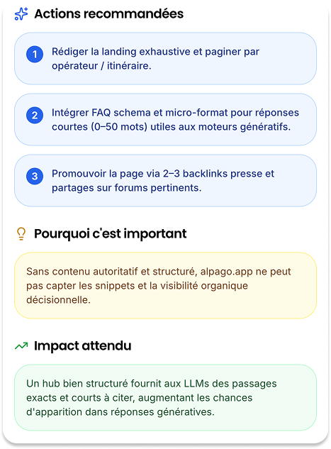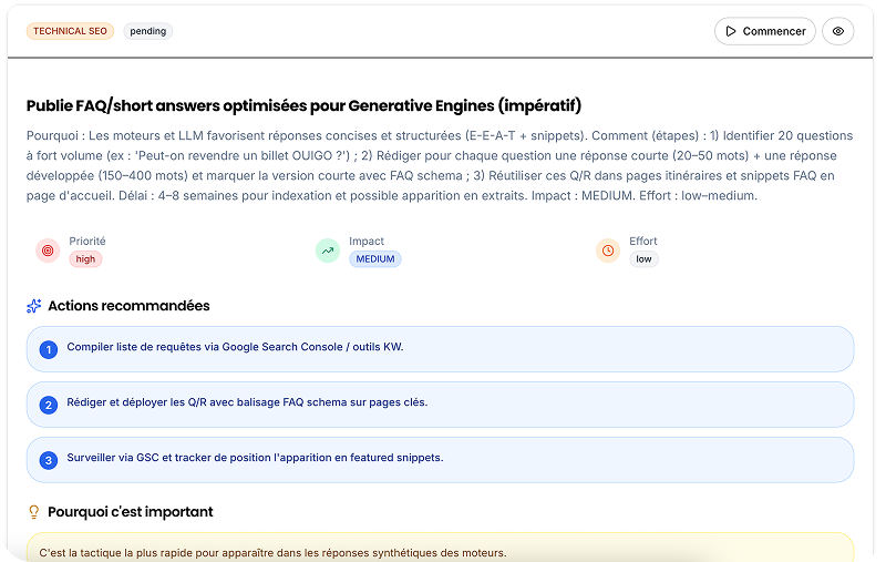 Passez à l’action avec des recommandations immédiates pour ChatGPT, Perplexity et Gemini.