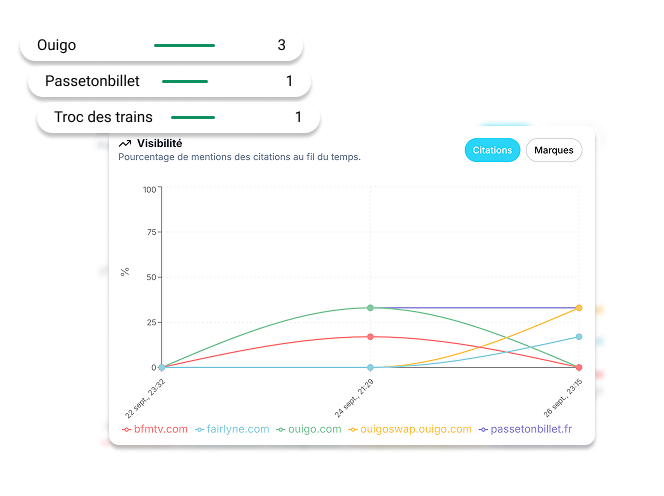 Comparez votre visibilité avec celle de vos concurrents dans les réponses IA.